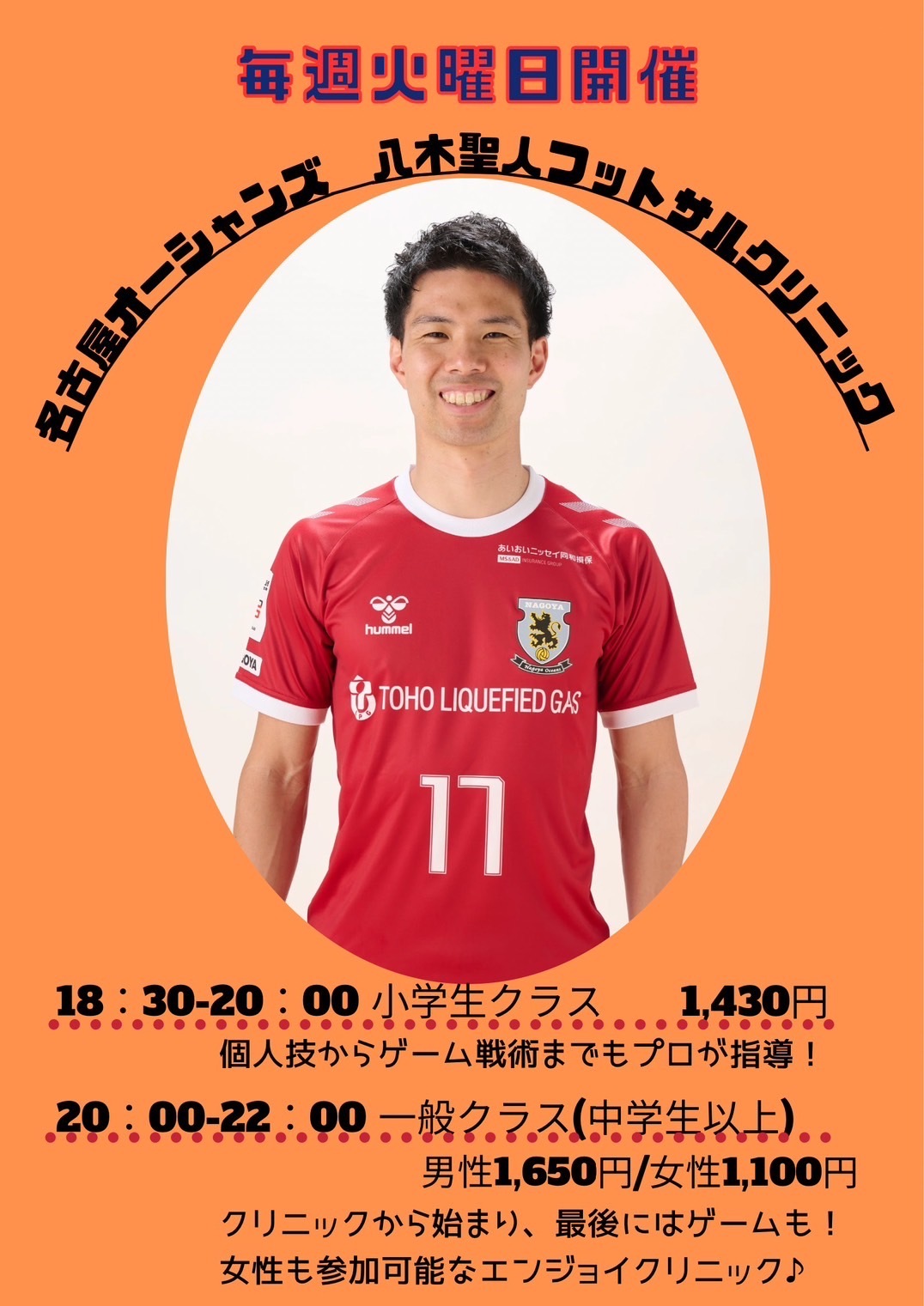 名古屋オーシャンズの現役選手による定期クリニックは、ホームグラウンド以外では当施設のみ!ぜひ本物のプロのテクニックを学びに来てください。