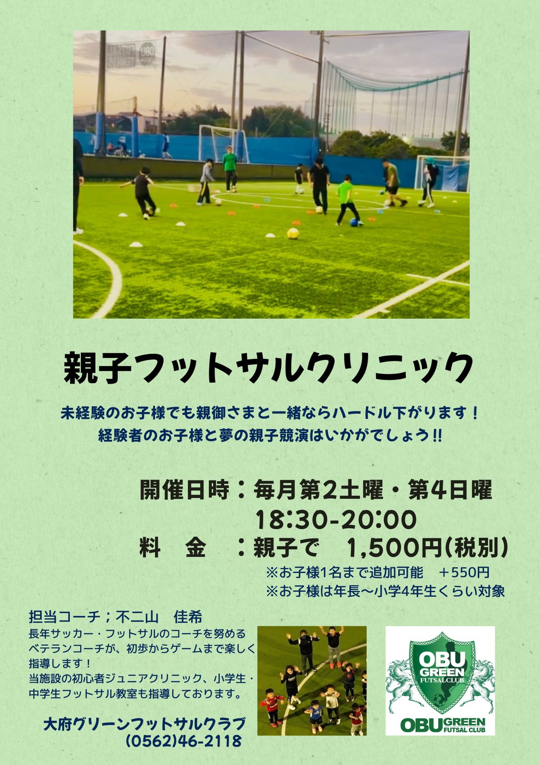 小学生向けの「フットサル教室」、初心者向けの「初心者クリニック」、中学生向けの「ジュニアユースクリニック」、親子で参加できる「親子フットサルクリニック」、プロに学べる「名古屋オーシャンズ選手クリニック」がございます。お子様の年齢や目的、ご都合の良い日時に合わせてご案内いたしますので、ぜひお問合せください。